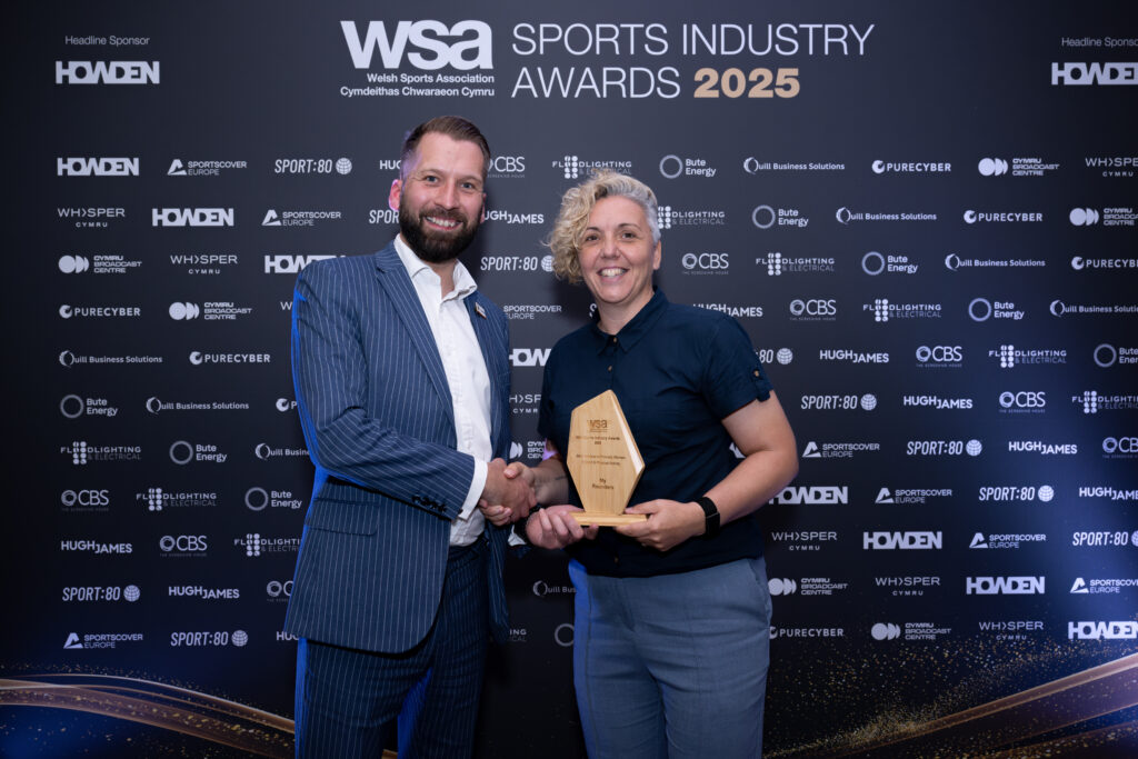 The Best Innovation Award, sponsored by Hugh James, was the next prize to be collected, as Caerphilly Sport and Leisure Services came to the stage. The organisation became the first provider in Wales to introduce SWIMTAG across four Leisure Lifestyle Centres. The cutting-edge technology has transformed participants’ swimming experience through real-time performance tracking, personalised insights, and gamification, making swimming more engaging, measurable, and motivating.